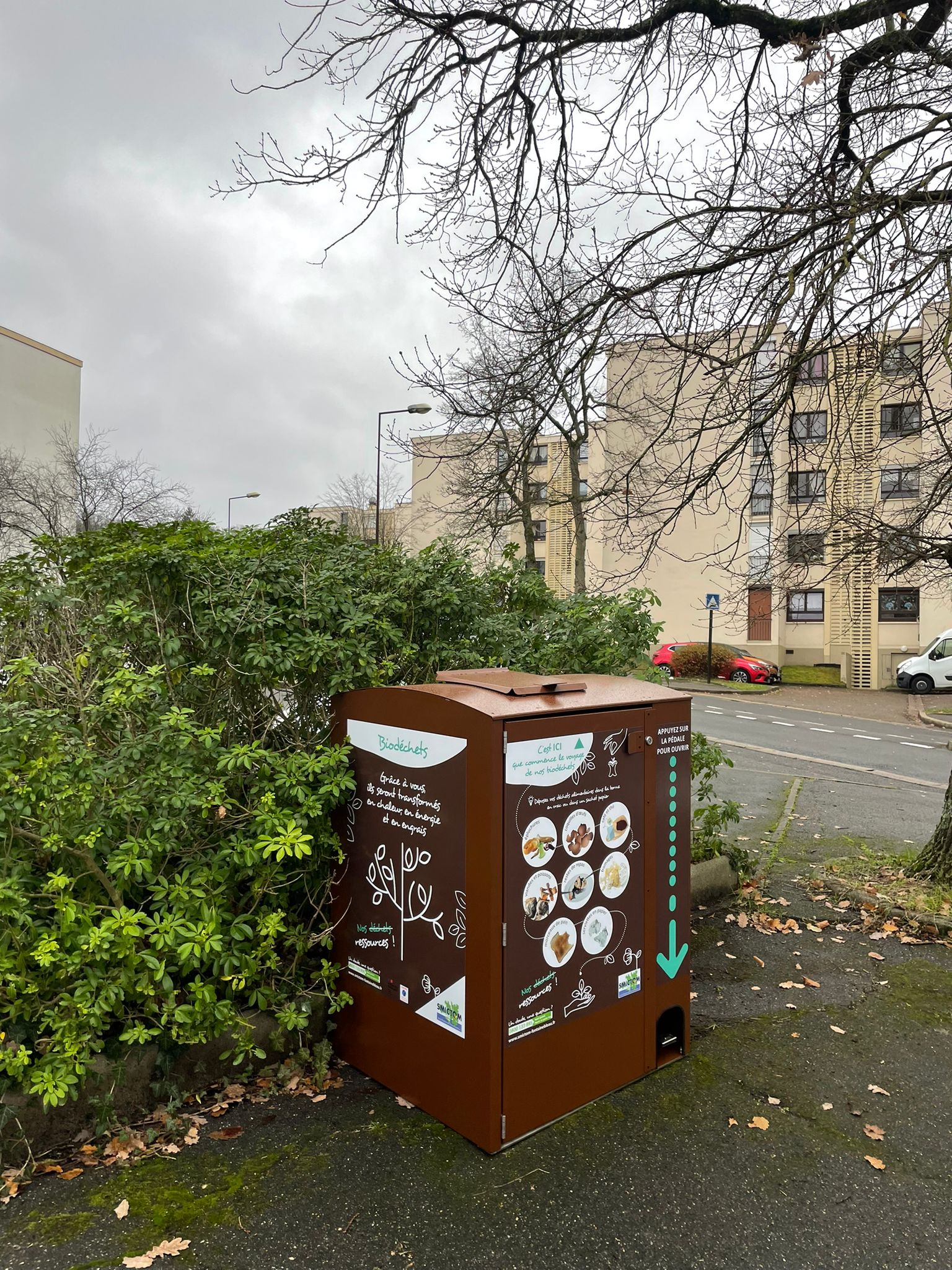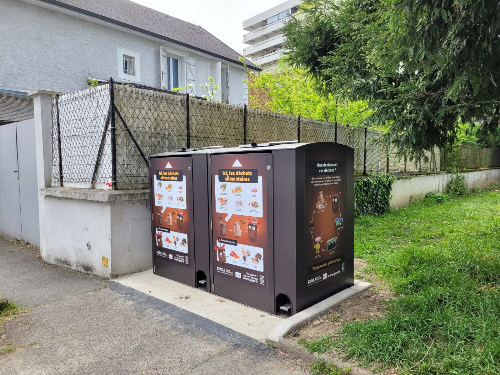 Parmi elles, le PAV sous forme d’abri-bac permet d’apporter une solution propre de collecte des biodéchets pour les habitats collectifs, les habitations individuelles, les centres-villes… ce point d’apport volontaire peu imposant permet de faciliter la collecte regroupée.
